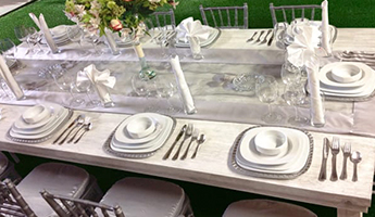 Sin duda alguna, ¡el toque fino para tu evento será lo que pongas sobre la mesa! Mantelería fina, fundones, caminos de mesa, cubiertos, vasos, copas, etc. ofrecerán ese gran toque a tu evento. ¡Conoce nuestras opciones!